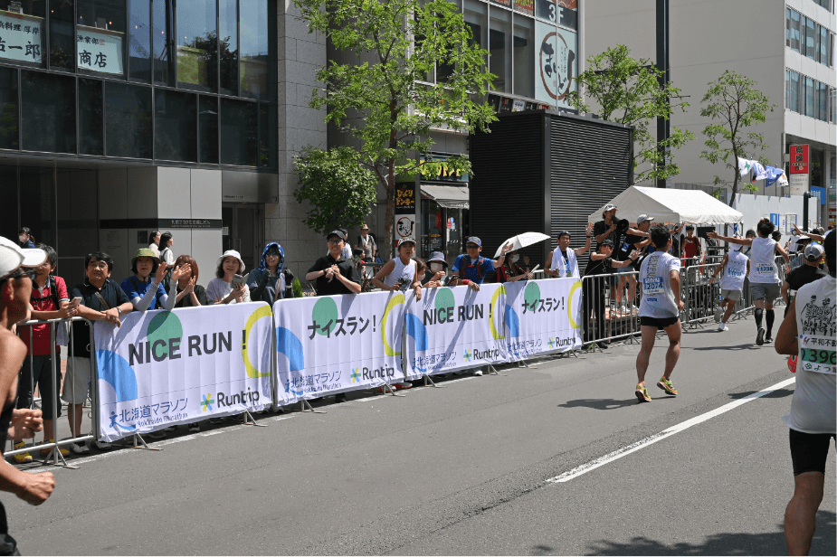 今年もチアゾーンを設置!北海道庁構内でゲストランナーを中心に、ラスト1kmとなったランナーを後押しします!