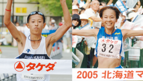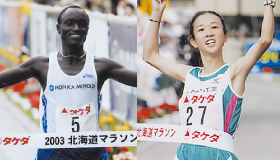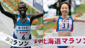 女子は昨年の優勝者で大会記録保持者の堀江知佳(佐倉A.C)が中盤から独走態勢を見せたが、最後の2kmで失速。それまでひたひたとその機をうかがっていたママさん選手田中千洋(トクセン工業)が見事逆転優勝し、北海道マラソン2度目の優勝を成し遂げた。