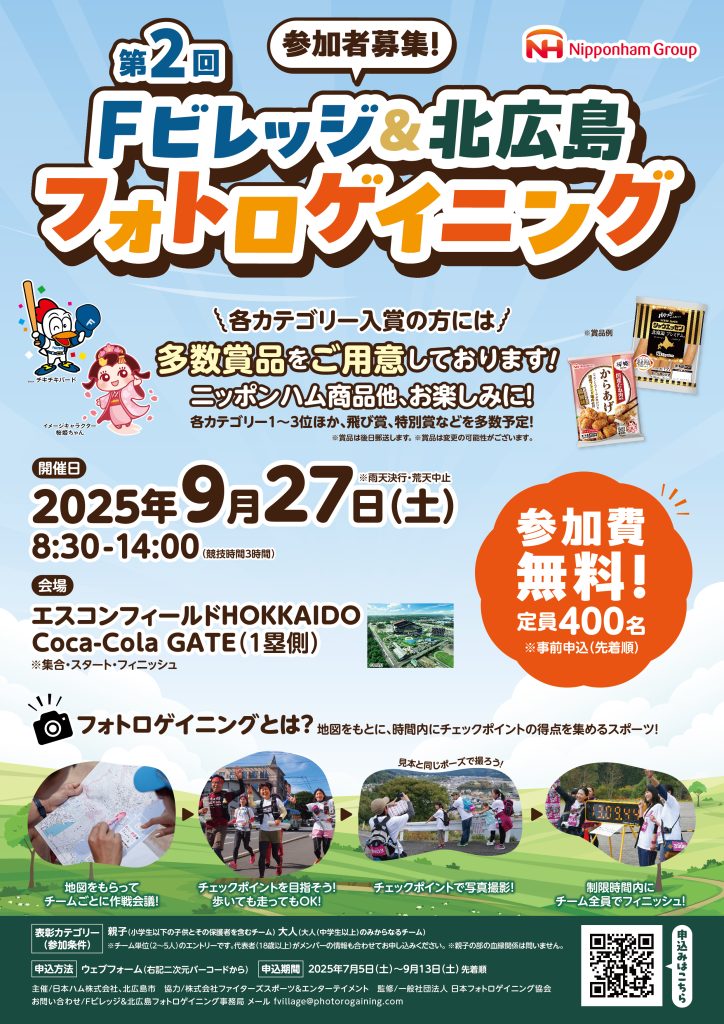 Fビレッジ&北広島市フォトロゲイニングは、エスコンフィールド北海道をスタート・フィニッシュとしまして、魅力あふれる北広島市内を楽しみながら巡って頂ける大会となっております。