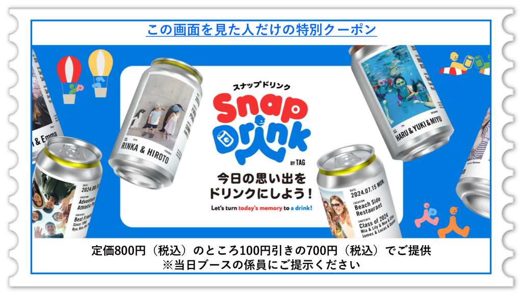 お気に入りの写真を缶飲料に残せる “Snap Drink” のサービス(道内イベント初出店)を展開します。