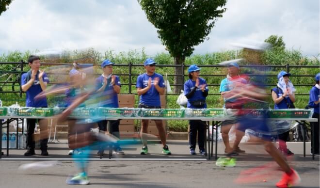 北海道マラソンには約4,000人のボランティアが参加しています。コース上の給水や沿道の自主警備、救護活動など、多くのボランティアの力に支えられています。ランナーだけでなく、ボランティアもまた北海道マラソンの主役なのです。