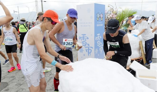 北海道沼田町の雪を使ってランナーをサポート