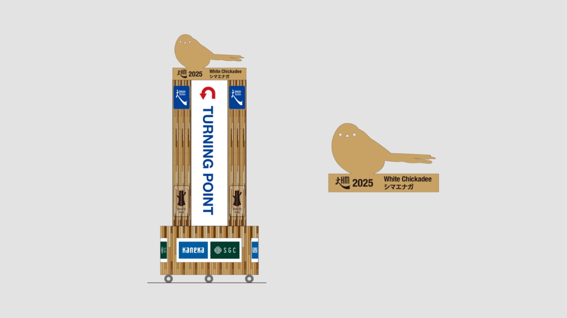 大会前々日、前日のEXPO会場でも展示します。大会当日は本大会唯一の折り返し地点に設置しているモニュメントを見ることを1つの目標にして、その先の完走を目指して頑張ってください。